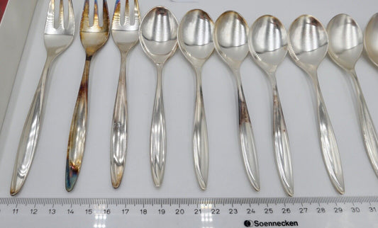 - NEU - 24 Teile BRUCKMANN 772 ELEGANCE 90er Silber Besteck Löffel Gabel Messer