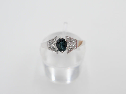 0,61 Ctw Eleganter 585 14K Entourage Weißgold Brillant - Saphir Ring Gr. 56