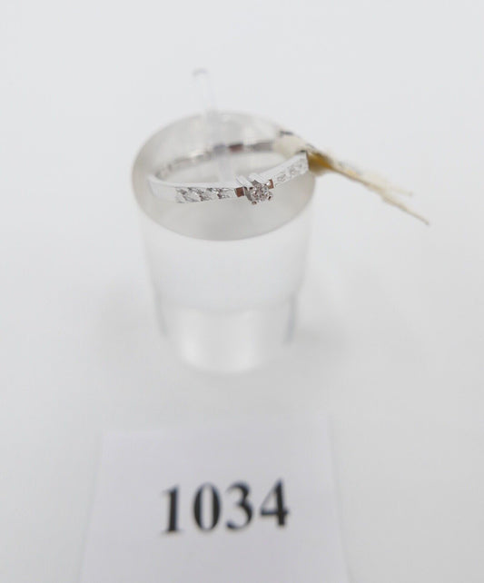 - NEU - 90er Jahre Solitär Ring Weißgold Gold 585 14K Brillant 0,015 Ct Gr. 52