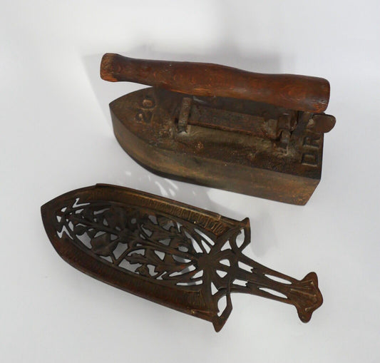 DRP 20er Gewicht altes Bügeleisen Bolzeneisen mit Untersetzer Gusseisen