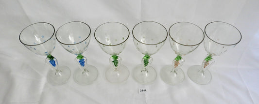 6x Lauscha Bimini Wein Glas Gläser Set Art Deco 14,8 cm buntes Traubenmotiv