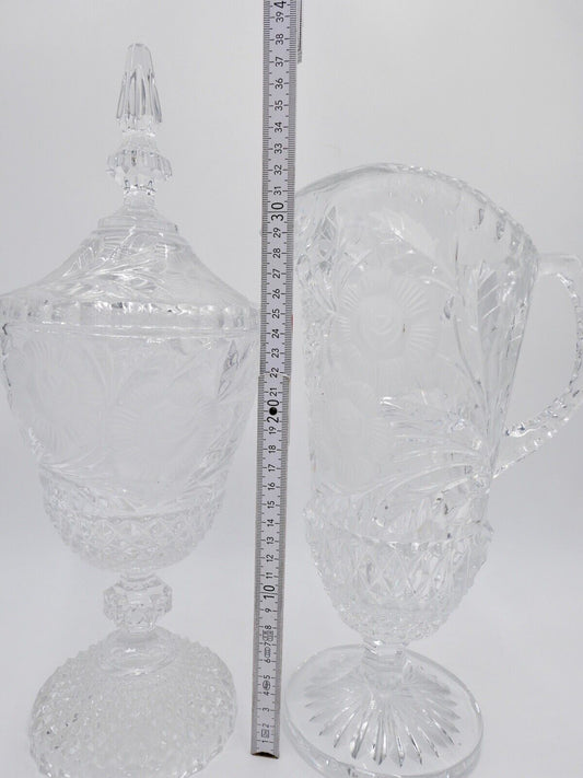 alt vintage Krug Karaffe Kanne Pokal Bleikristall geätztes Glas