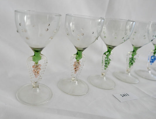 6x Lauscha Bimini Likör Glas Gläser Set Art Deco 10,7 cm buntes Traubenmotiv