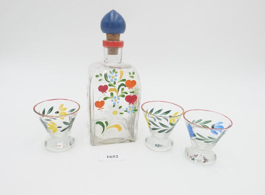 altes Schnaps Likör Set Glas Handbemalt Gläser Karaffe Blumenmuster