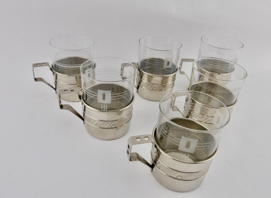 6x Teeglashalter mit Glaseinsatz 50er Jahre
