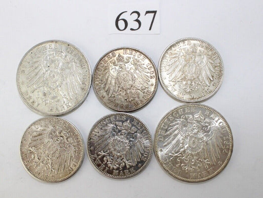 6x 2 & 3 Mark 1902 - 1914 " Friedrich Baden " Jäger J. 30 34 36 39 SilberNormaler Preis €265,00 EURNormaler PreisGrundpreis / pro-