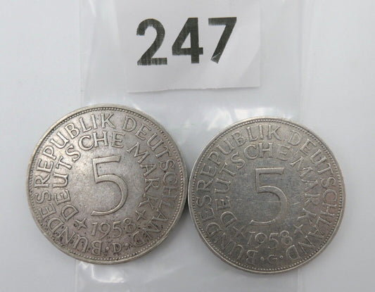 2x 5 DM 1958 D G Silbermünzen Jäger J.387 Silberadler HeiermannNormaler Preis €100,00 EURNormaler PreisGrundpreis / pro-