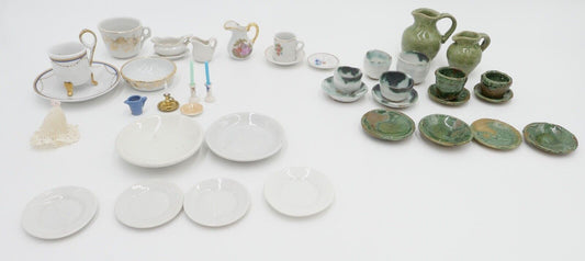 Vintage Porzellan Miniatur Puppenmöbel Puppenhaus Geschirr Tassen Teller