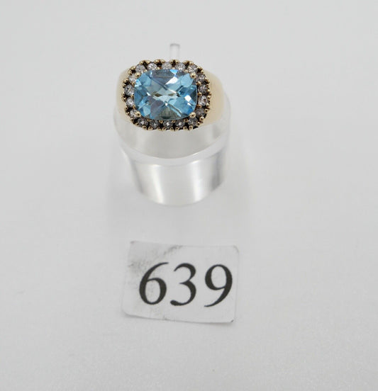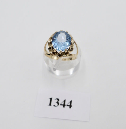 Damen Gold Ring 375 9K 4,70 Ct mit großem blauen Blautopas & Zirkonia Gr. 54