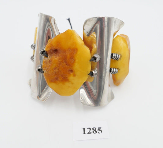 80er Jahre Designer MG Silber 925 Bernstein Armband Armreif P Posen Polen