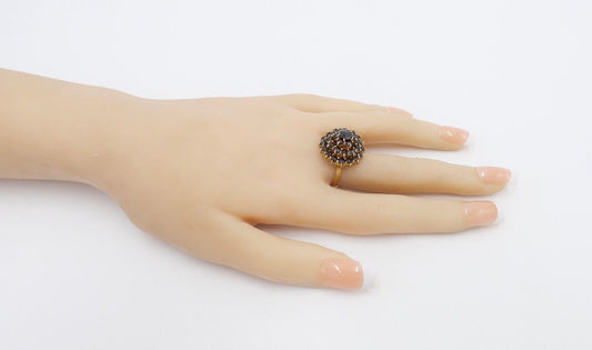 70er Jahre Damenring Granat Gelbgold Ring 333 / 8K Gr. 58 mehrteiliger Ringkopf