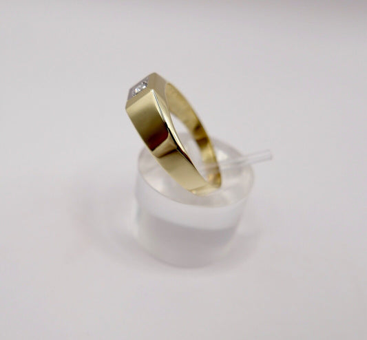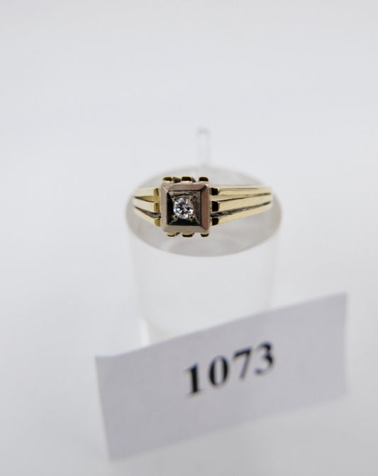Herren Ring Gelbgold 585 / 14K Gr. 63 Diamant / Brillant 1980er Jahre 0,13 Ct