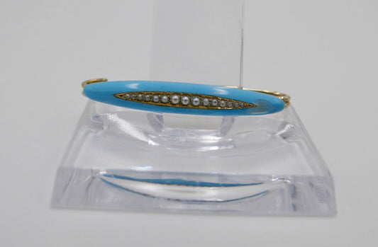 Antike Brosche Anstecknadel mit 15 Saatperlen 585 14K Gold blaue Emaile