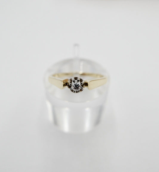 Alter Solitär Ring Gelbgold 585 14K Diamant 0,25 Ct / Gr. 60-61