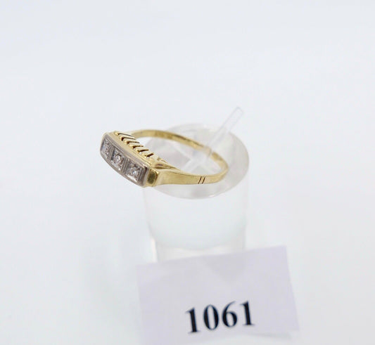 50er Jahre Damen Ring Gelbgold 585 14K drei Steine Diamanten 0,075 Ct Gr. 59 60