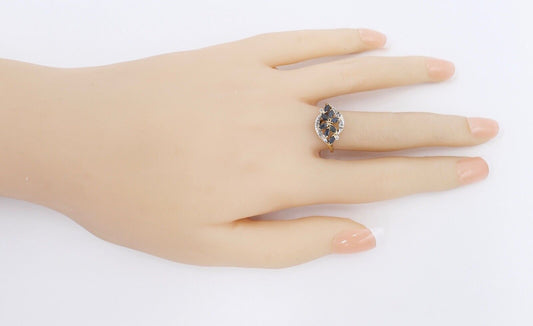 0,61 Ctw Eleganter 585 14K Entourage Weißgold Brillant - Saphir Ring Gr. 56