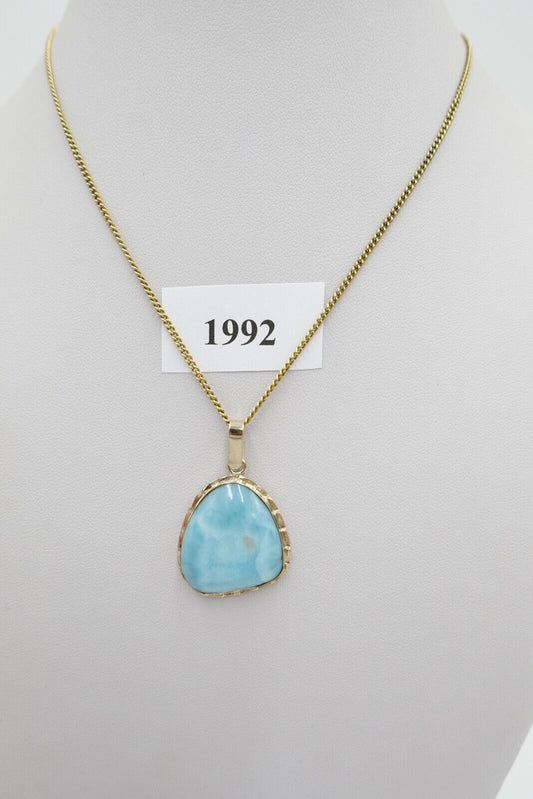 LARIMAR Gelbgold Anhänger 585 / 14K Handgefertigt Ø 26mm