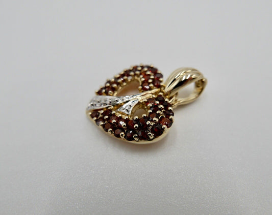 Herz Anhänger Granat & Diamant 333 / 8K Gelbgold Ø 19,2 mm