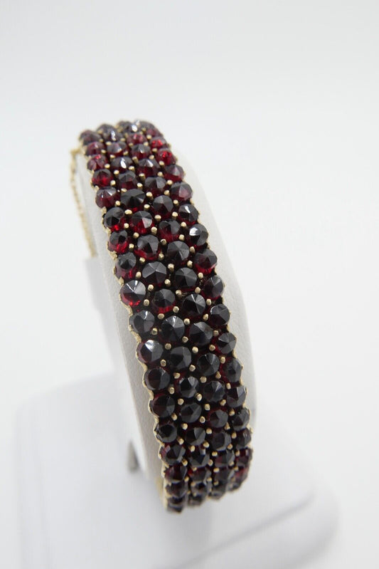 ANTIK - BIEDERMEIER um 1880 Granat Armreifen Silber vergoldet Armband