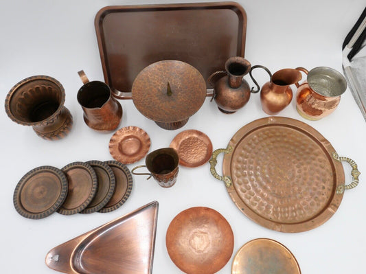 Posten großes Konvolut Kupfer Tablett Kännchen Kerzenständer etc Dekoration