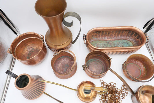 Posten 9 Teile Kupfer Kanne Kübel Gießkanne für Blumen etc. Dekoration
