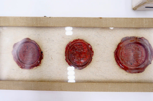 Alte & Antike Wachs Siegel Sammlung 8 Stück hinter Glas Asperg Sigillum 1692