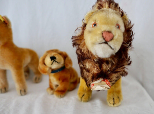 4x alte Steiff Stoff & Plüschtiere Katze Löwe Leo Hund Boxer Dackel