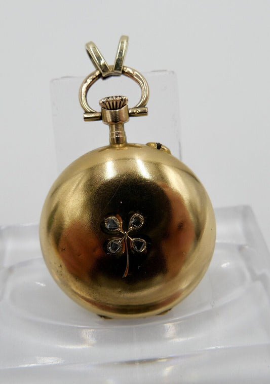 Antike Schweizer Damen Taschenuhr 585 Gold Diamanten im Kleeblatt 56 14K 0,585Normaler Preis €1.200,00 EURNormaler PreisGrundpreis / pro-