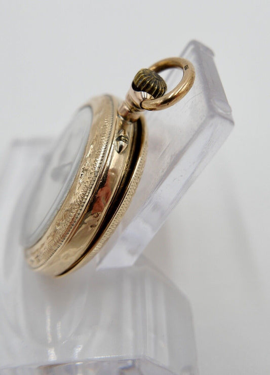 kleine BF Damen Taschenuhr 1930-40er GOLD 585 14K Schweiz Emaille floral 29mm