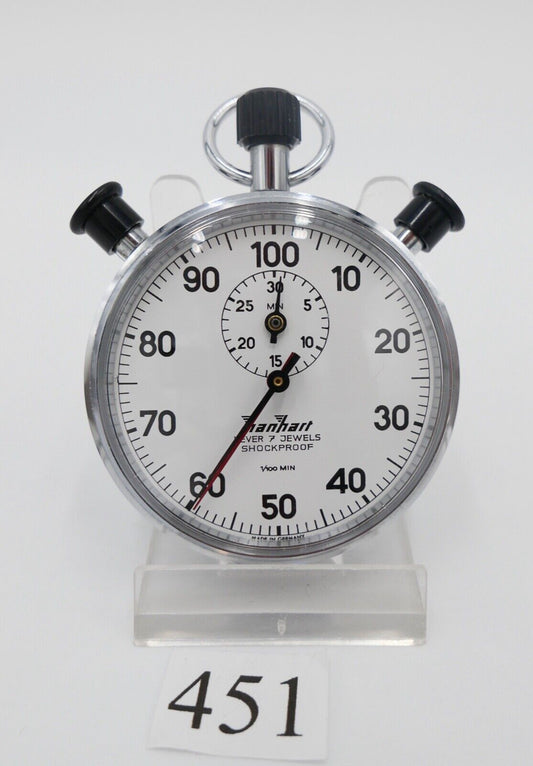 1970er HANHART Stoppuhr 30 Min 1/100 Teilung mechanisch Additions Doppelstopper