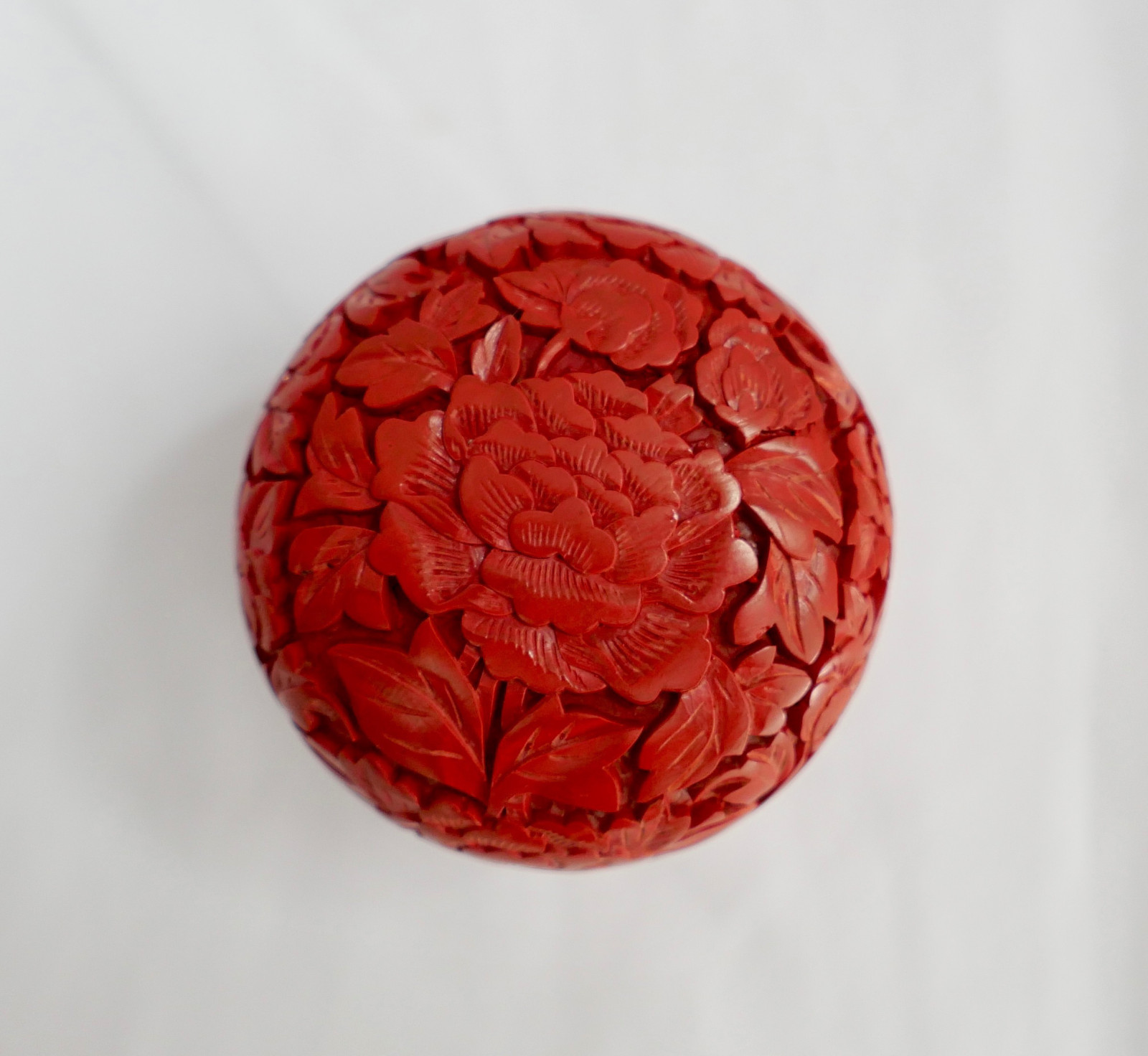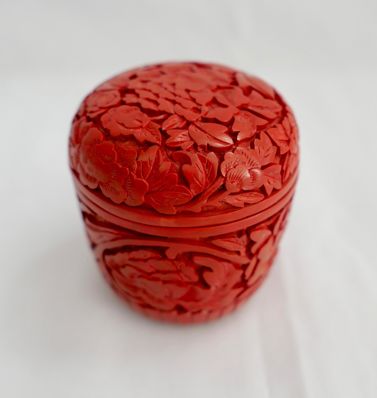 Carved Red Cinnabar Lacquer Box, China, with Lid
