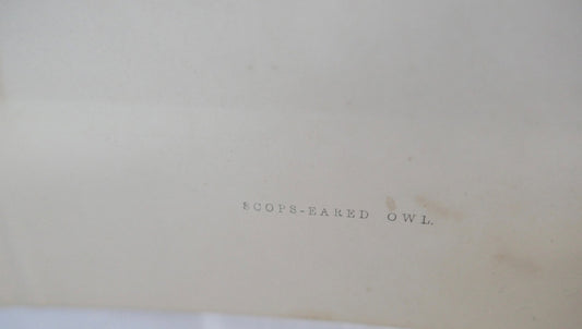 alter Farb Holzstich Eule Scops-eared Owl in OVP Zwergohreule Otus scops