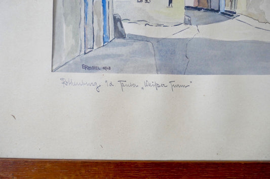 E. REICHEL Original Aquarell 1943 Rothenburg Weißer Turm signiert Unikat