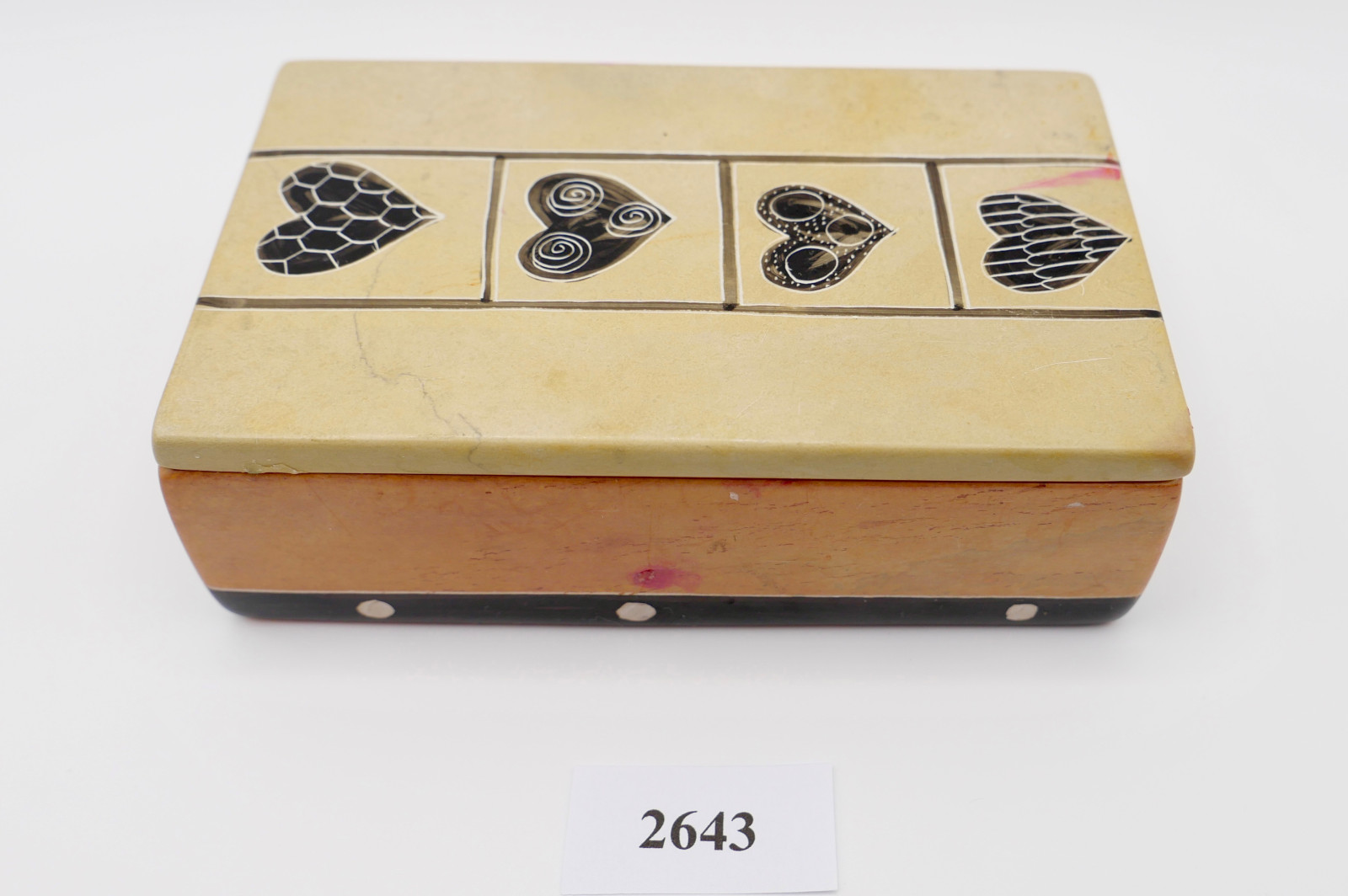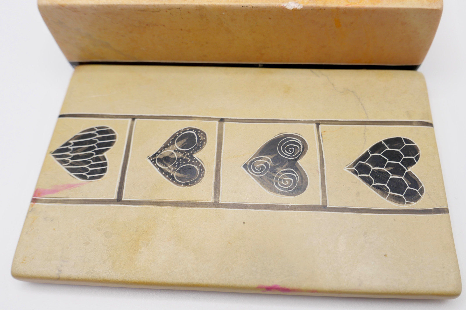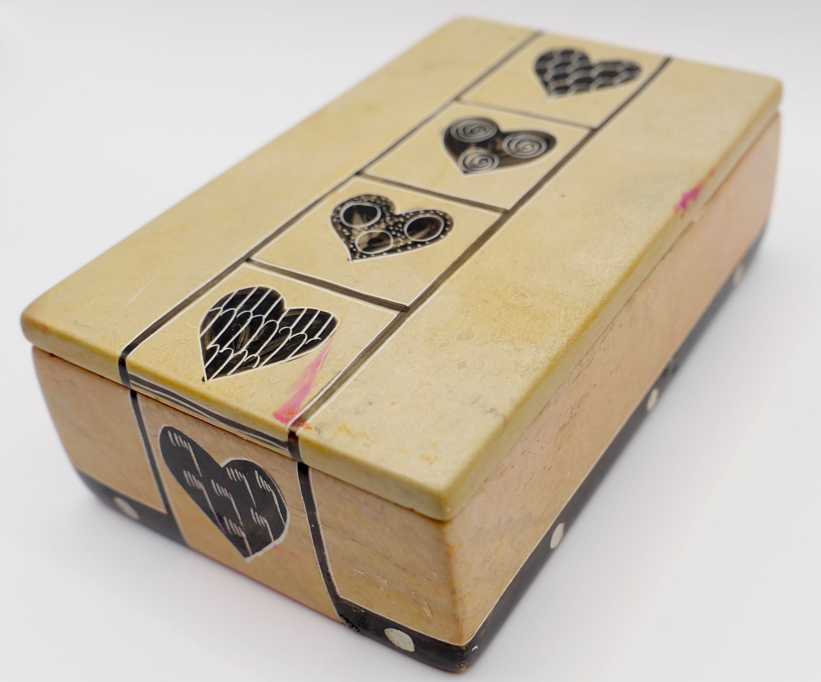 alte Kartenbox Kartenaufbewahrung Schmuckschatulle Box Speckstein Kisii mit Herz