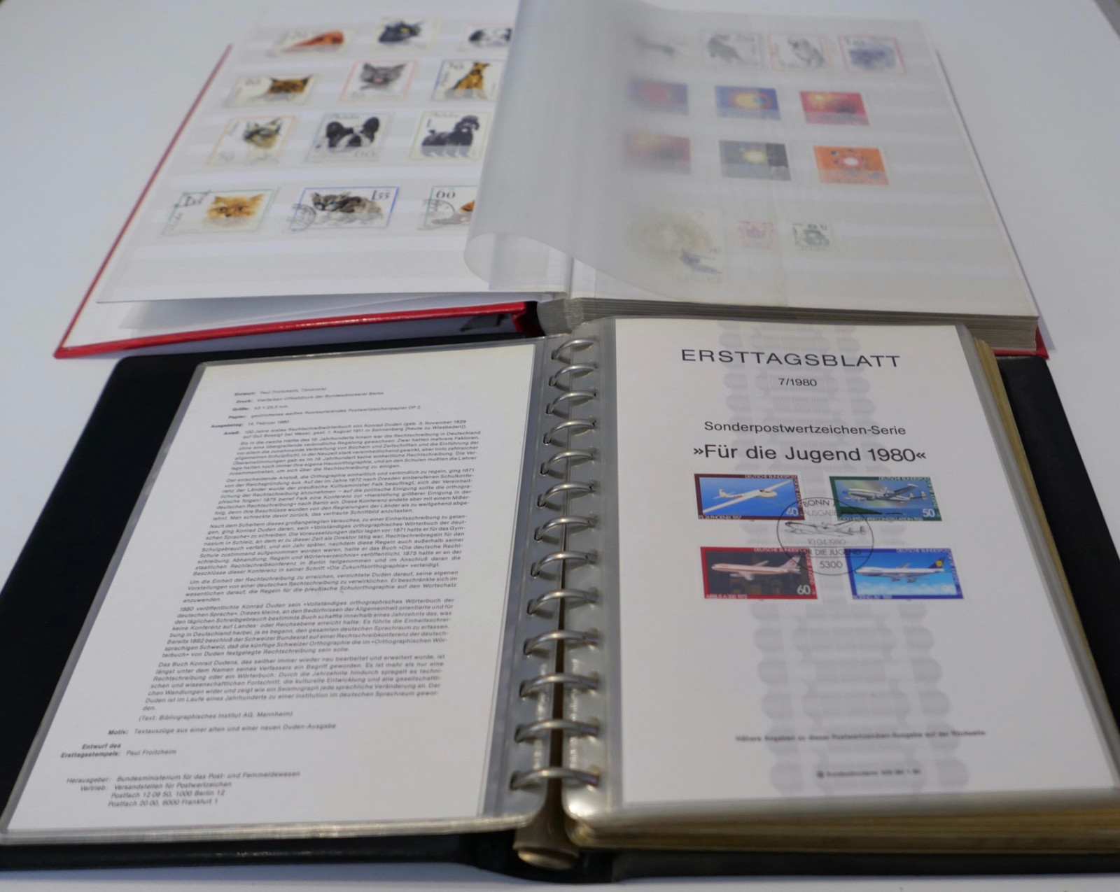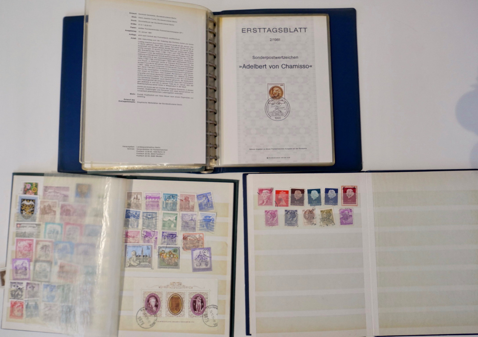 Gebraucht. Die Alben und Marken befinden sich in einem altersgemäßen, unsortierten Sammlerzustand.