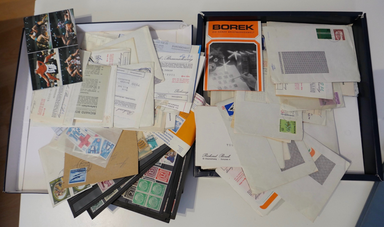 Teilweise postfrisch, viel aber auch gestempelt. Umschläge und Schachteln mit Lager- und Gebrauchsspuren.
