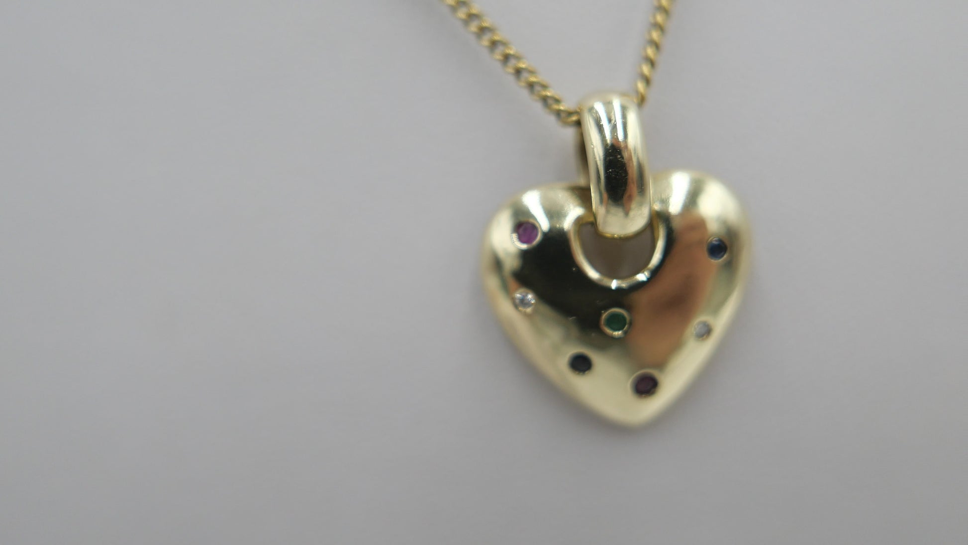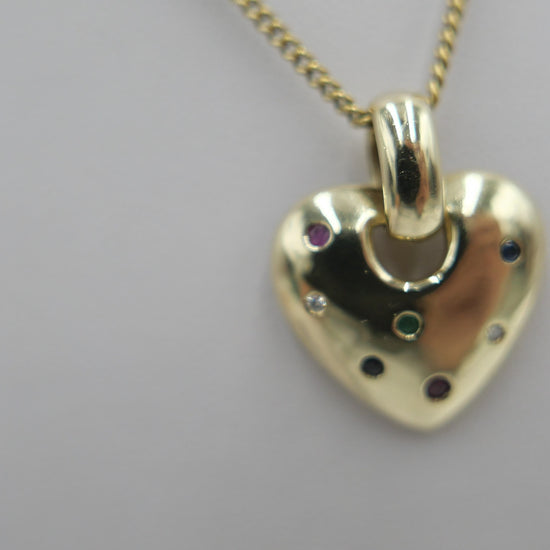80er Herz Love Gold Anhänger Multicolor Diamant Saphire Smaragd Rubin 585 14K