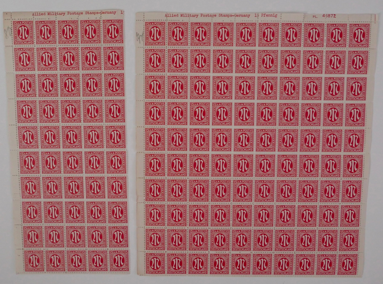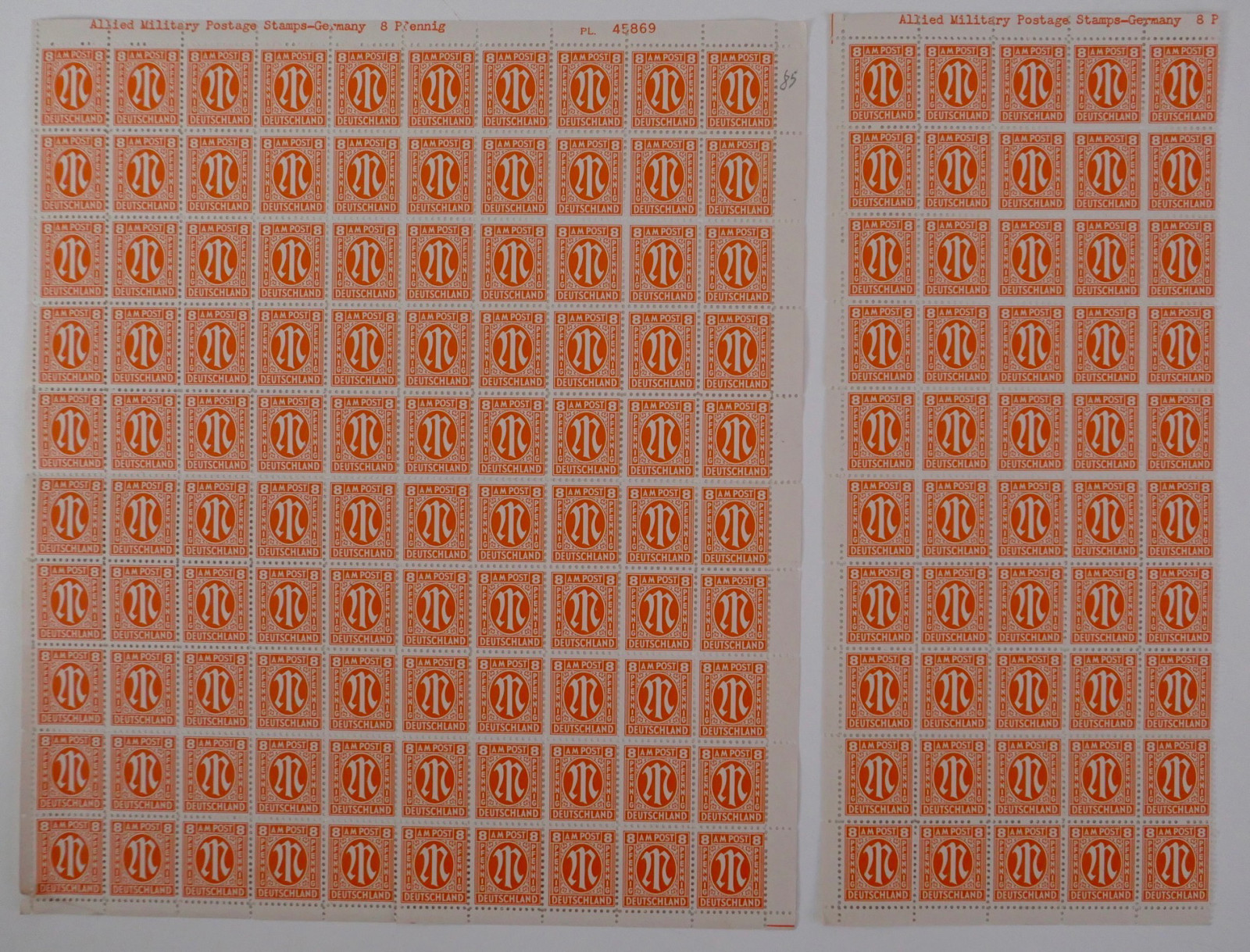 Teilweise sind ganze Bögen zu 100 Marken vorhanden.