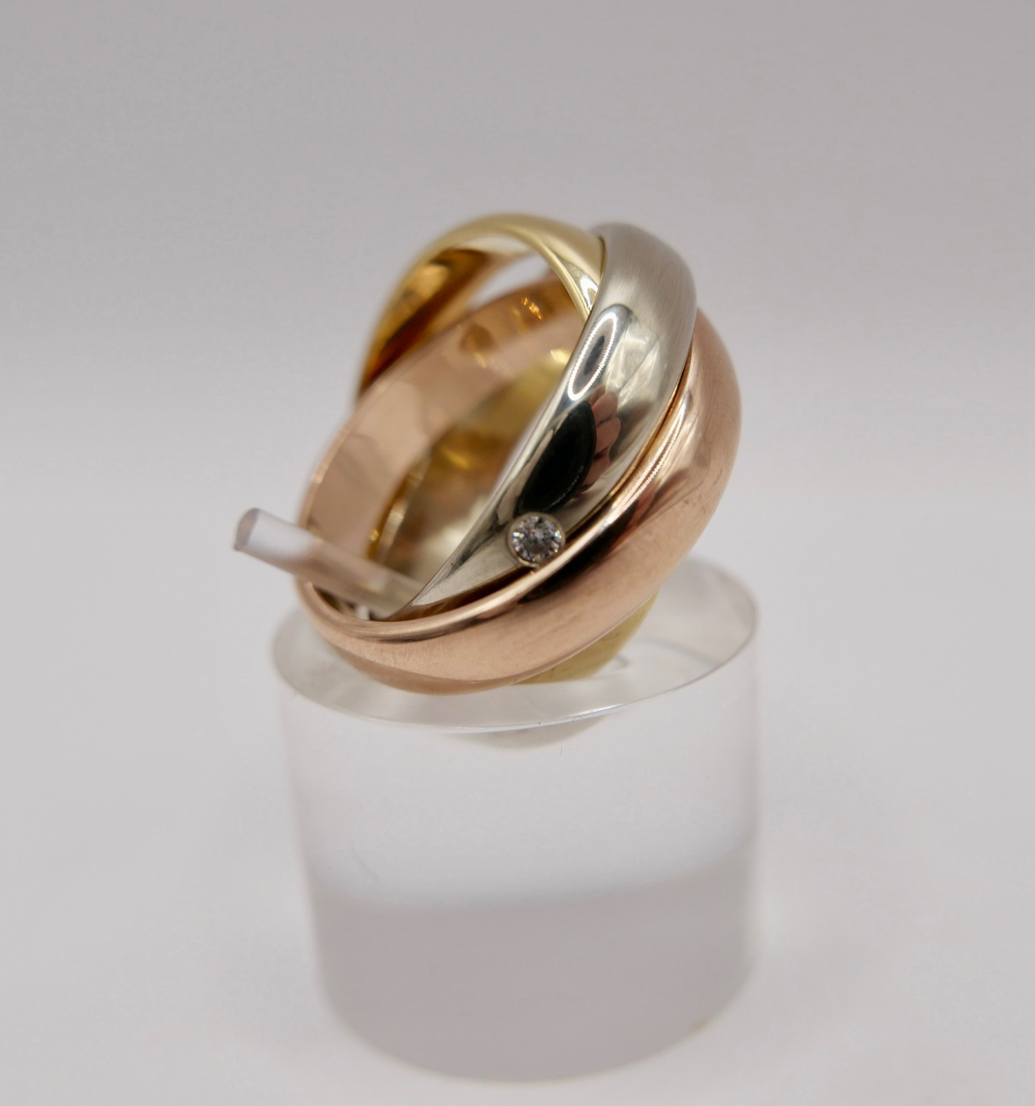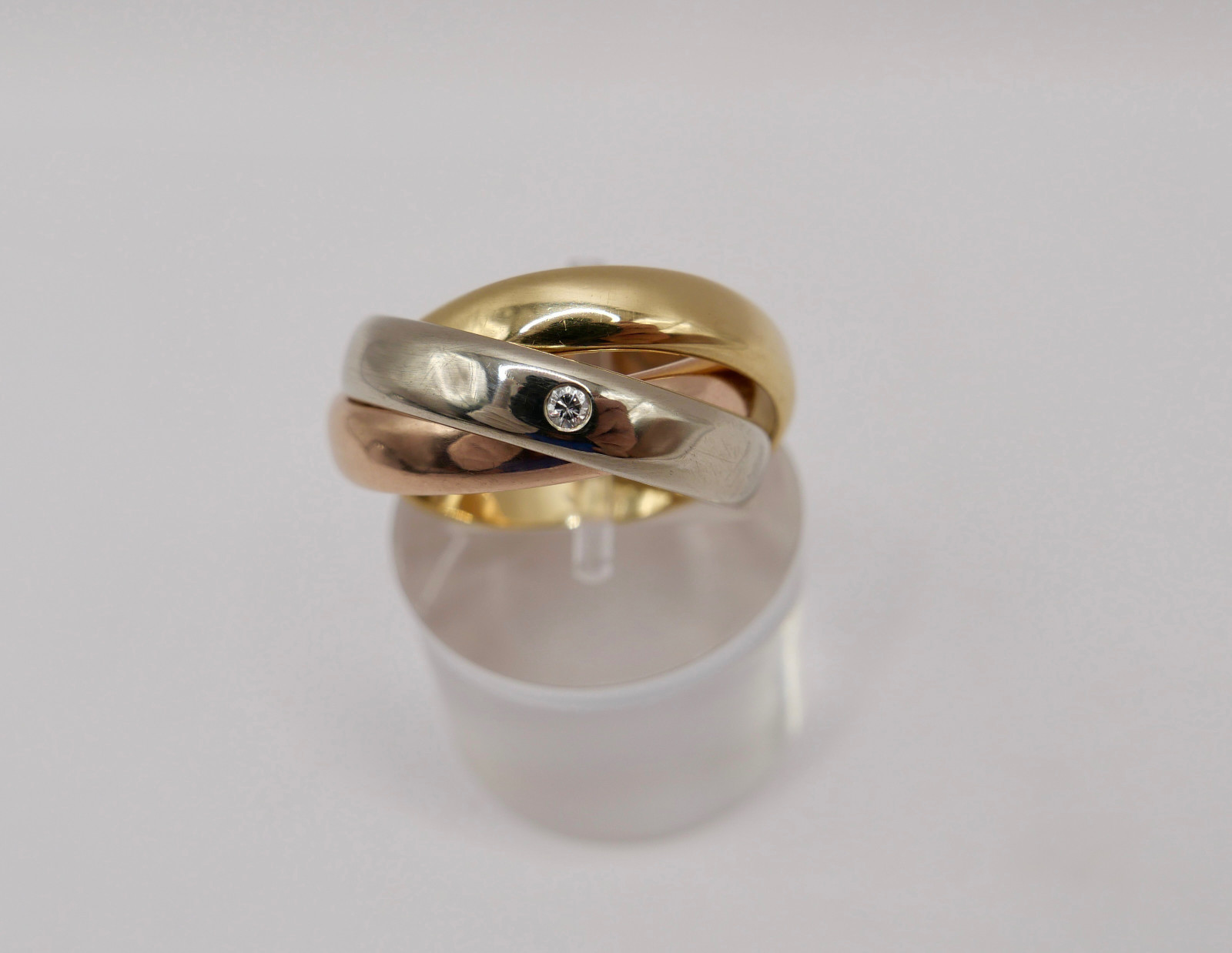 Tricolor Dreifach Dreier Damen Ring Gold 750 18K Gr. 55 Brillant Pierre Niederer