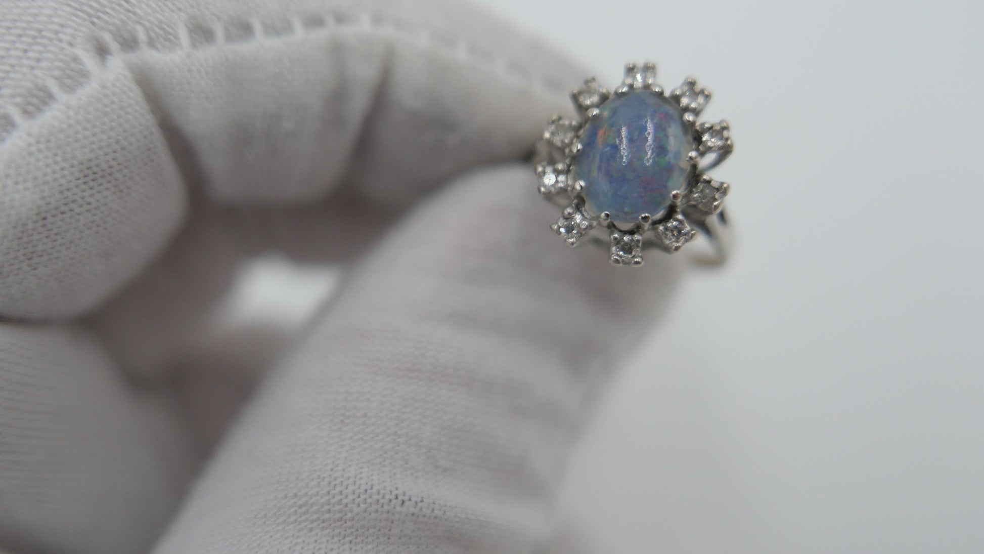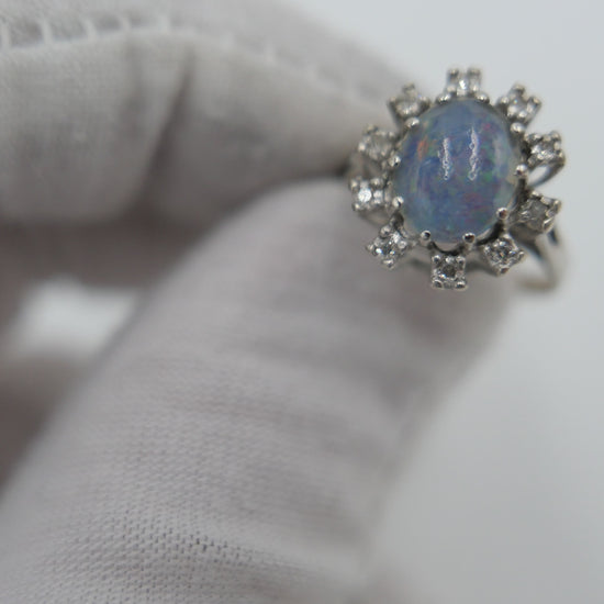 Cocktailring Weiß Gelb Gold Opal & Diamant 585 14K 1,43 Ct Gr. 57