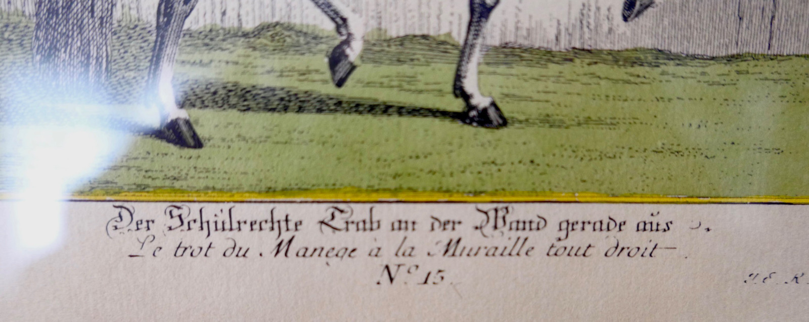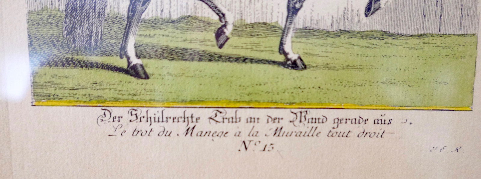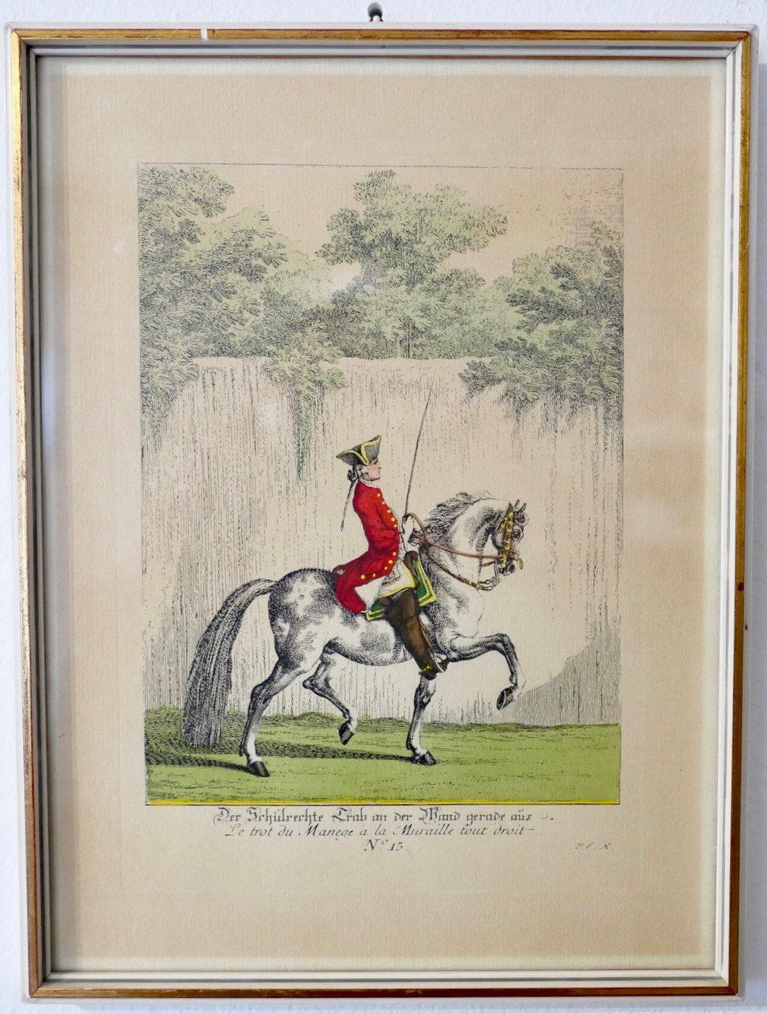 Die Reitschule Nr. 15 Der Schulrechte Trab an der Wand Johann Elias Ridinger