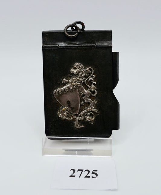 Antikes Chatelaine Notizbuch Metall Löwen-Wappen um 1900 Miniatur-Almanach