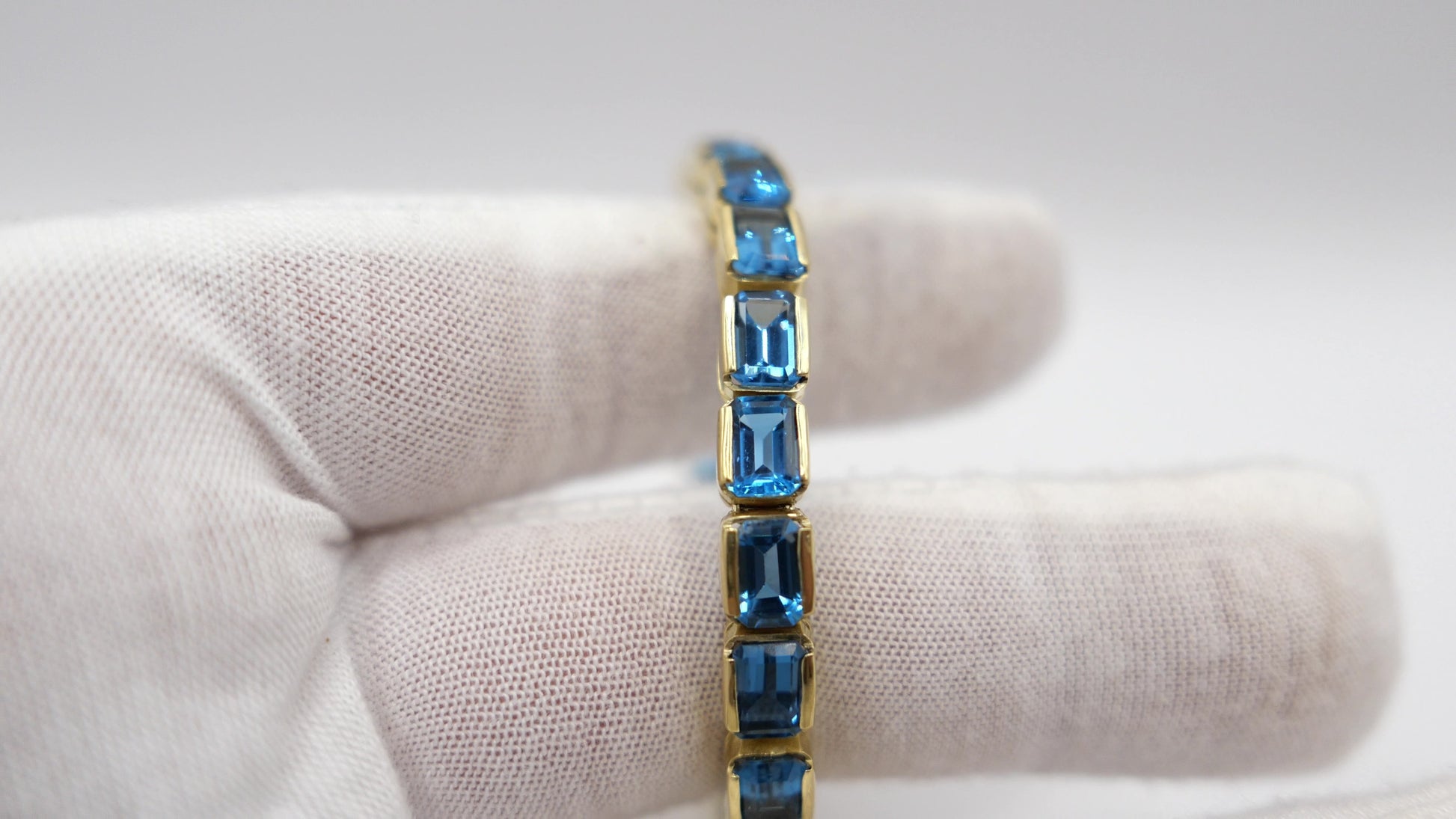 1990er Jahre Blau TOPAS TOPAZ 750 18K Gelbgold GOLD Tennis Armband 32,5 Ctw