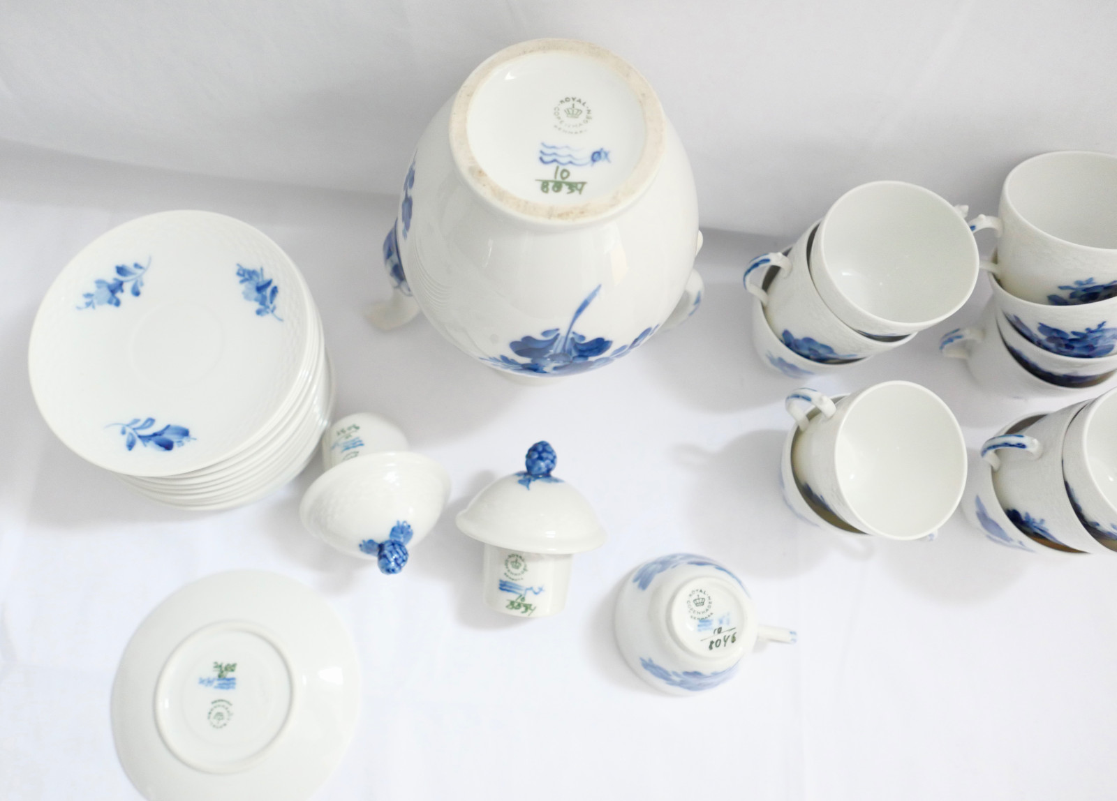 29 Tlg ROYAL COPENHAGEN " Blaue Blume " Mokka Service Porzellan Teller Tassen