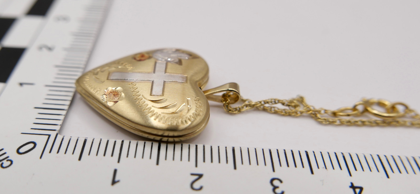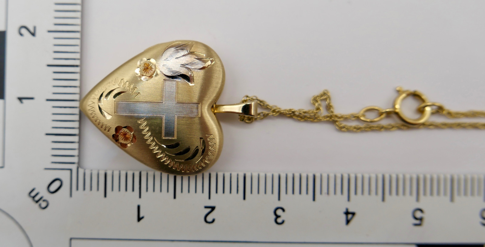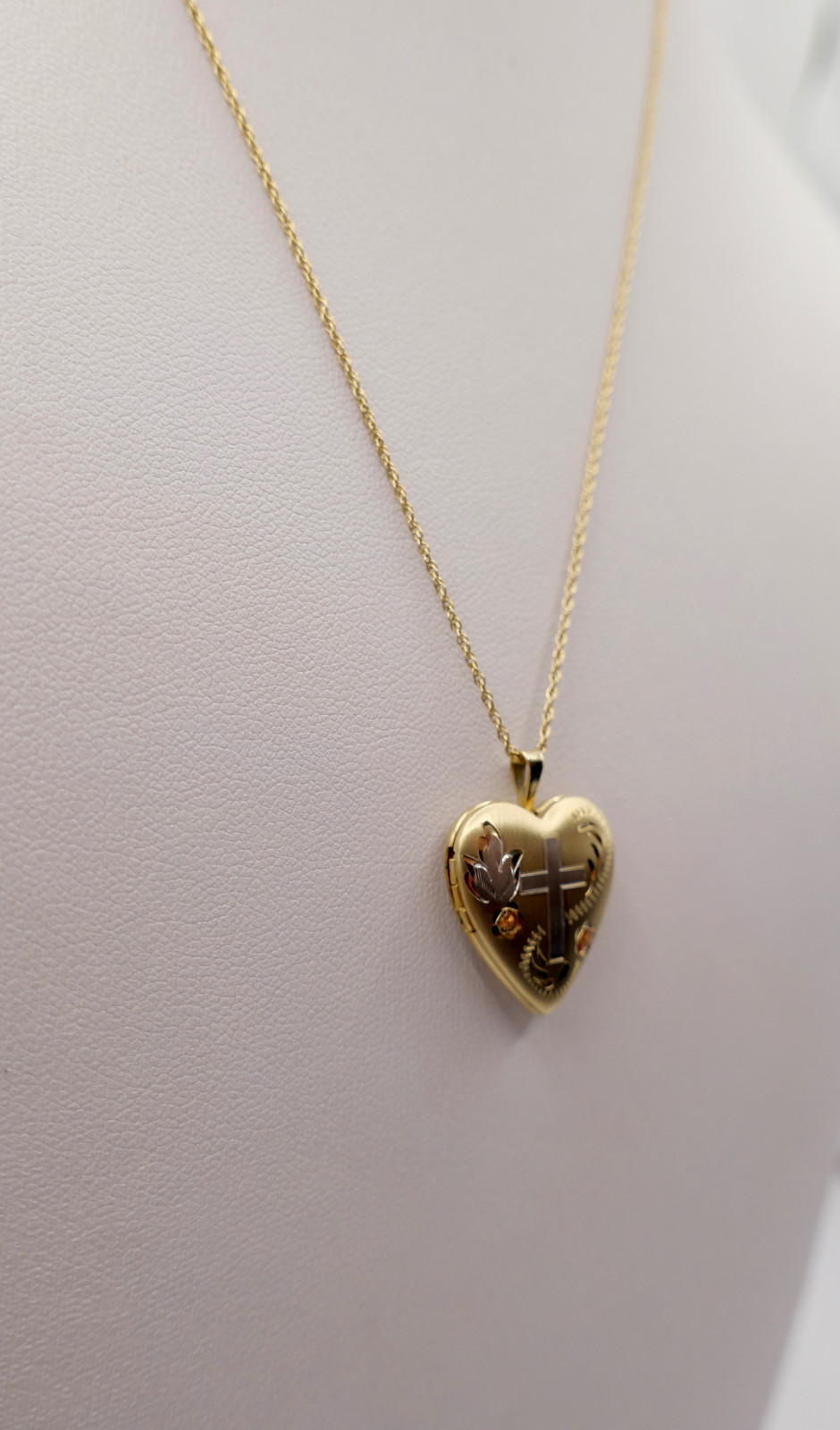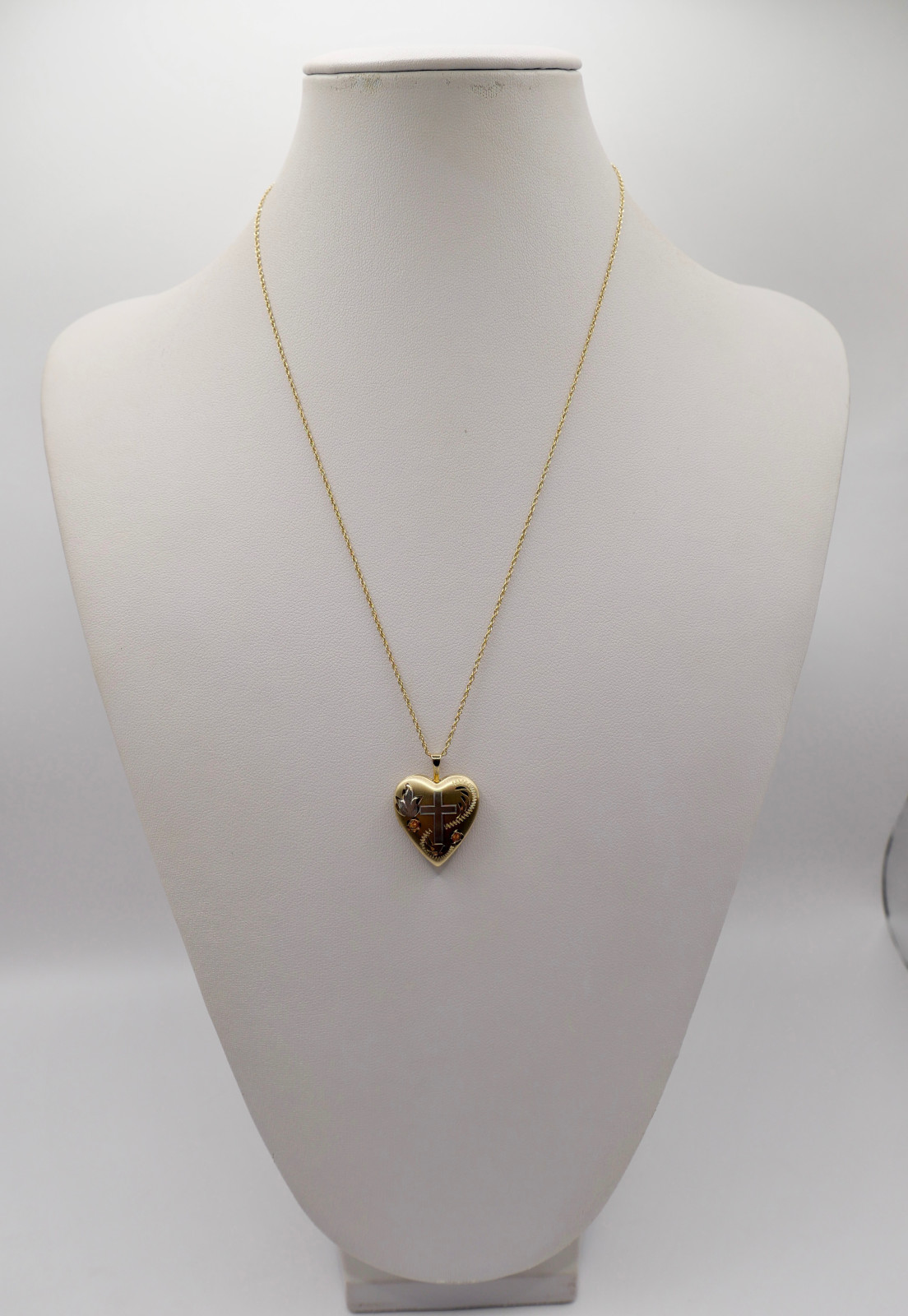 60er Kette 14K GF Herz Anhänger Christlichem Kreuz USA Foto Medaillon NEUwertig