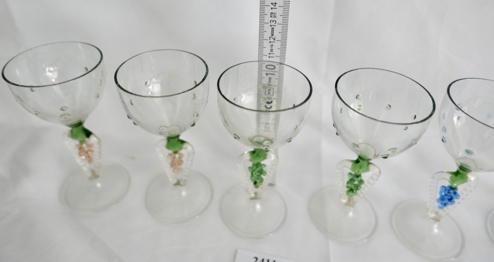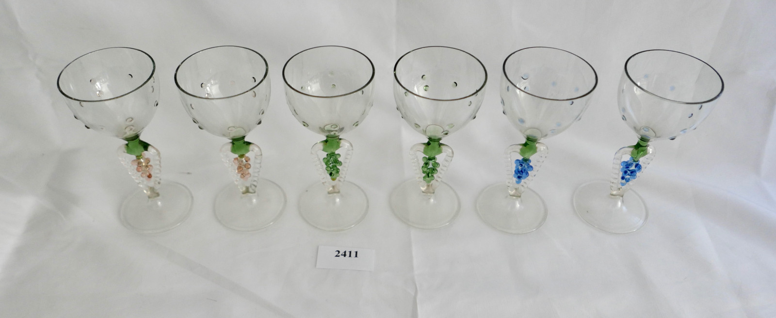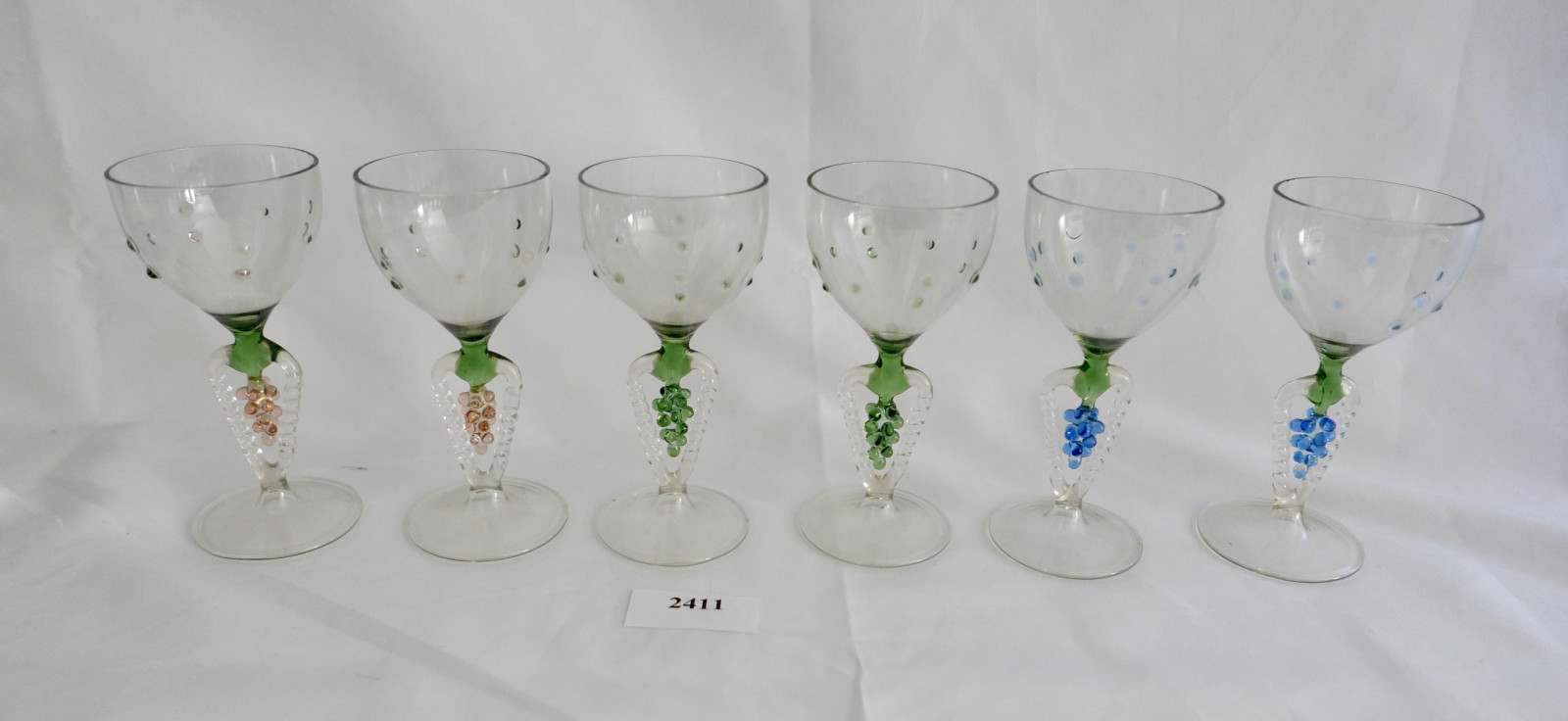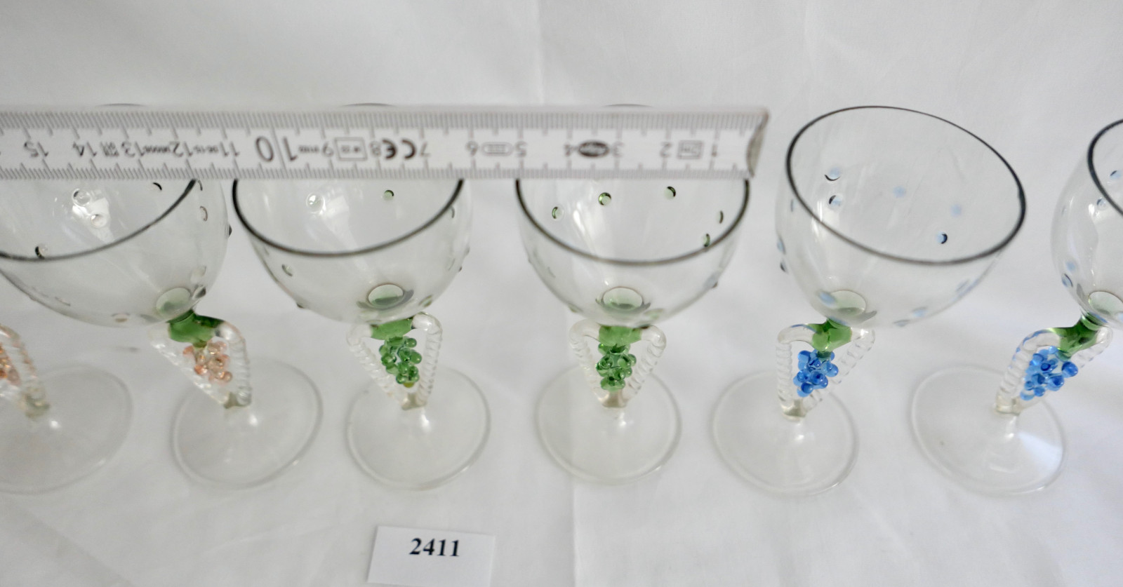 6x Lauscha Bimini Likör Glas Gläser Set Art Deco 10,7 cm buntes Traubenmotiv