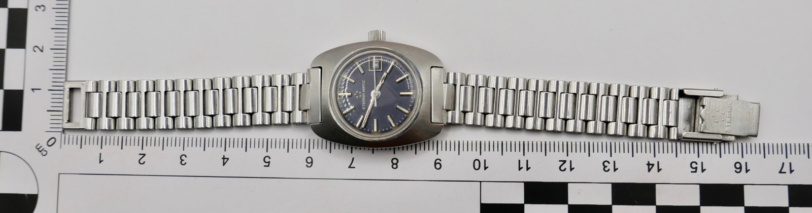 70er Eterna-Matic Damenuhr Automatic Orig Band blaues Zifferblatt 154T Cal 12671