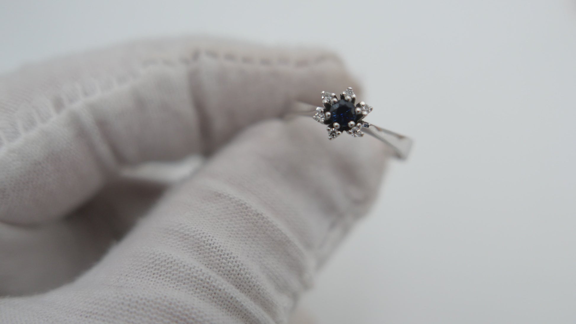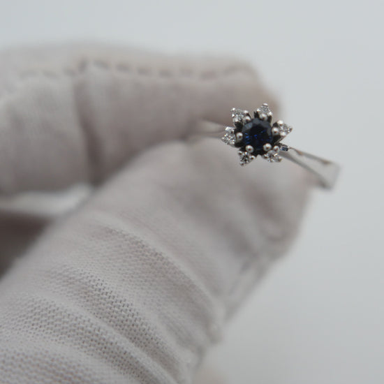 70er Jahre Ring Weißgold 585 / 14K Diamant & Saphir Gr. 61