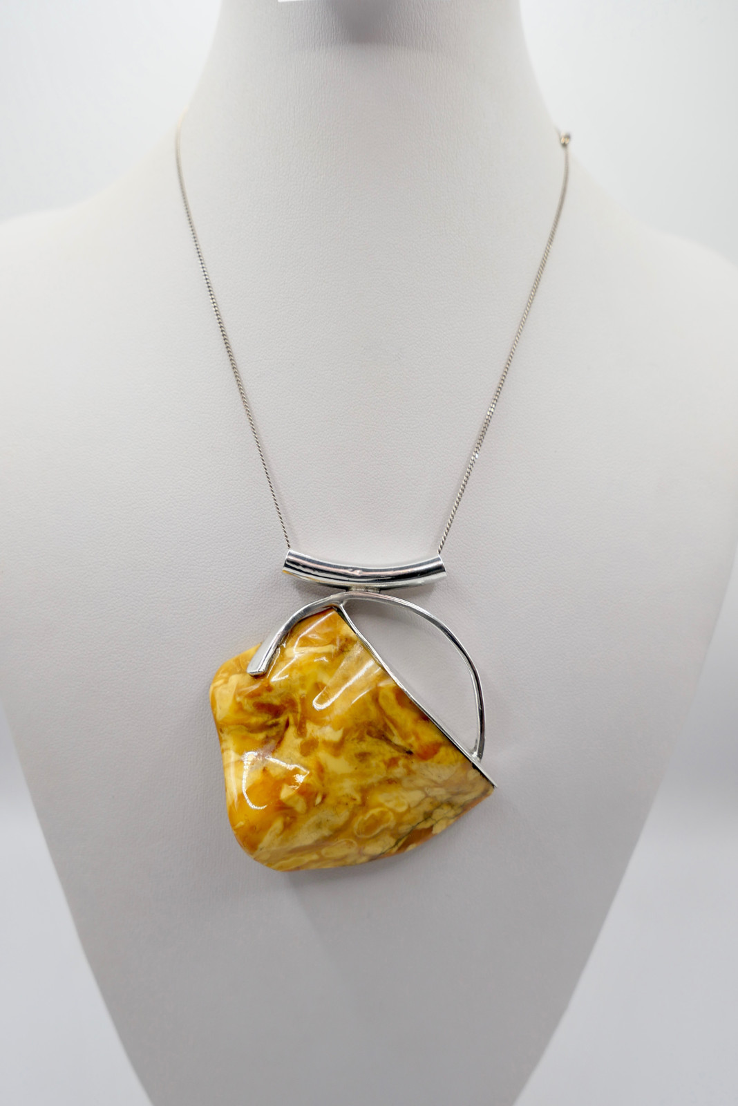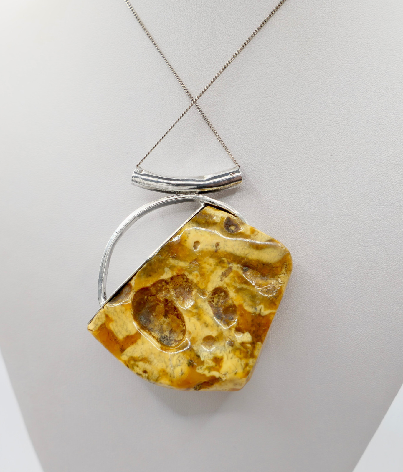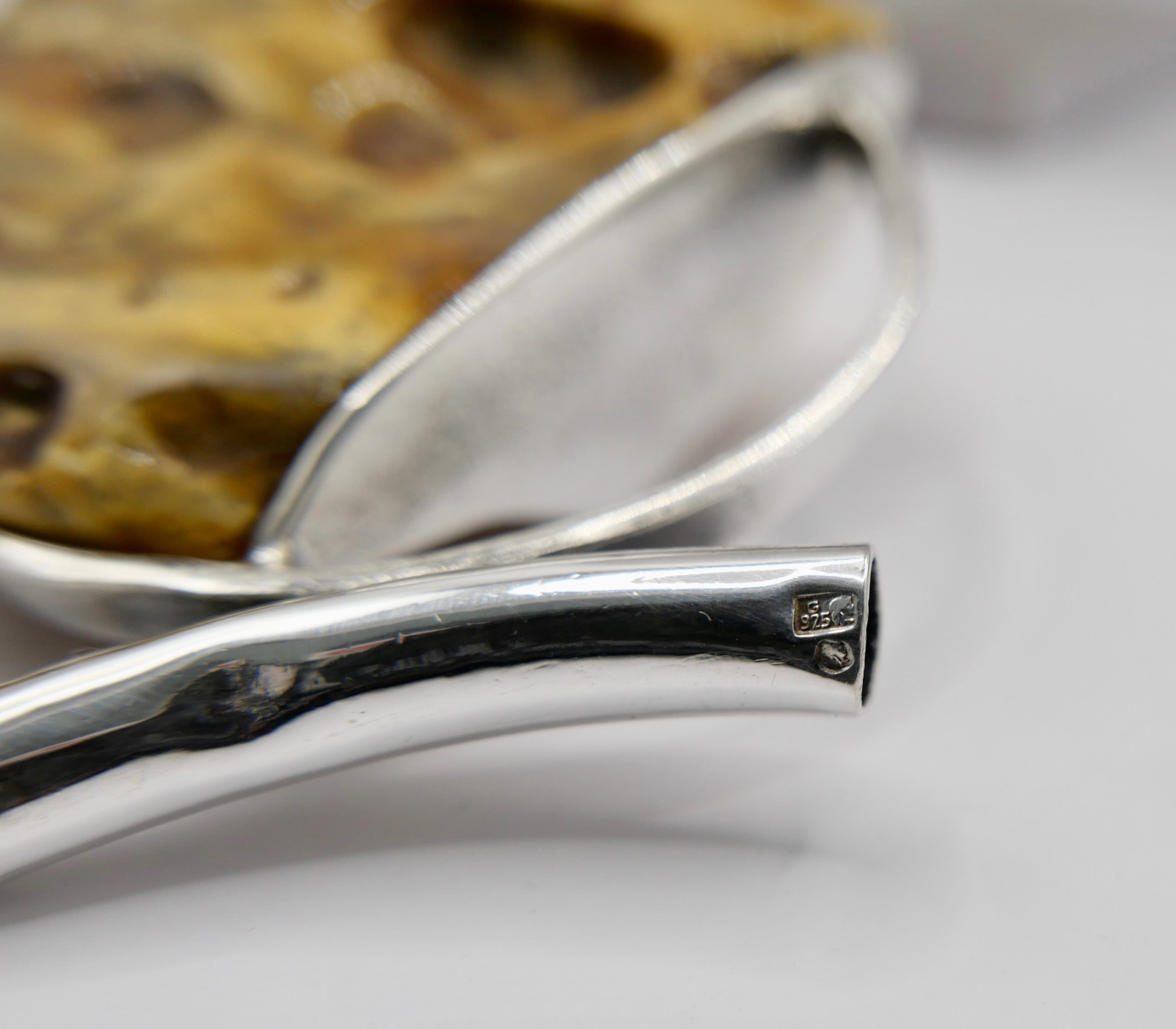 80er Jahre große Bernstein Butterscotch Anhänger 925 Silber Danzig Gdansk Polen