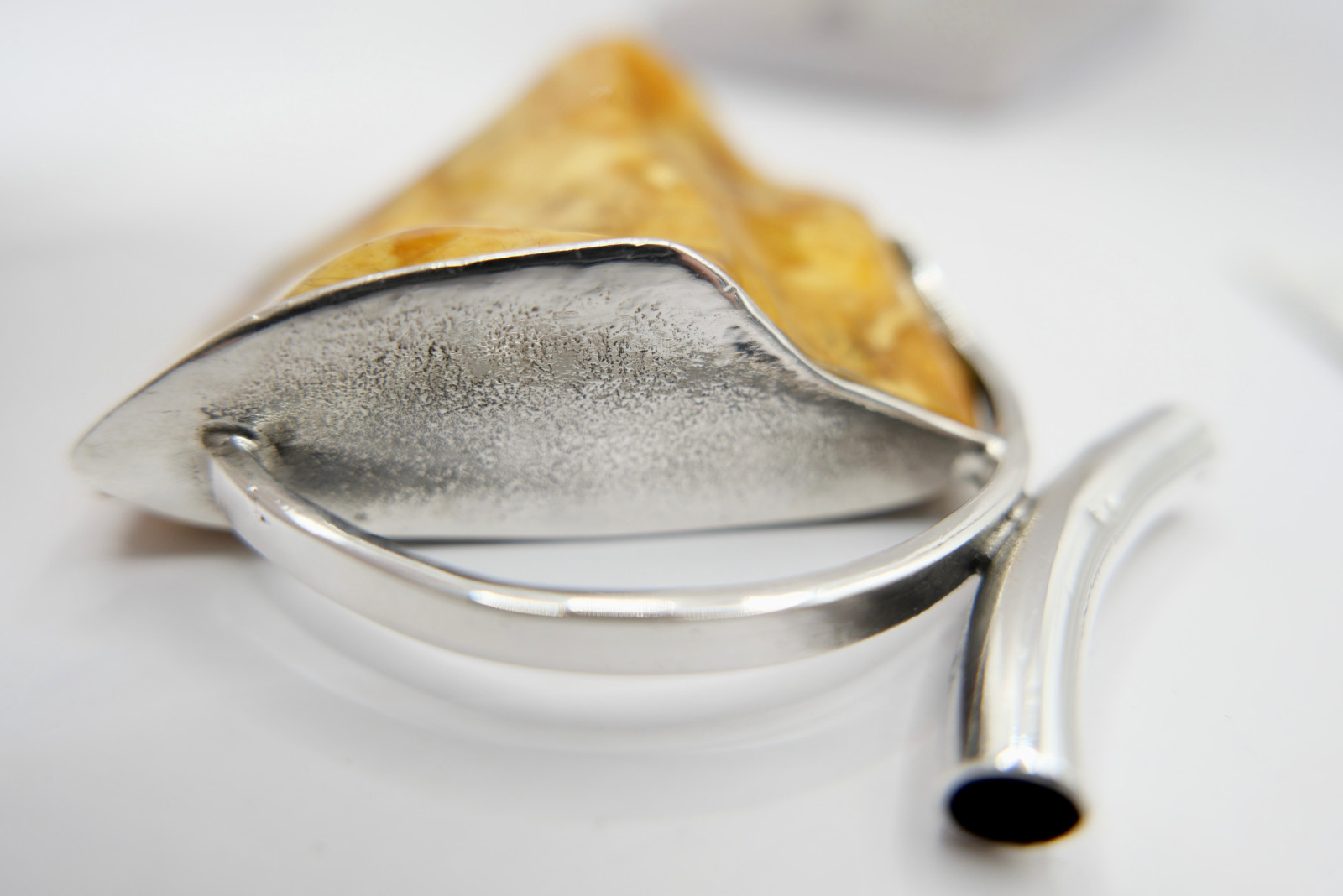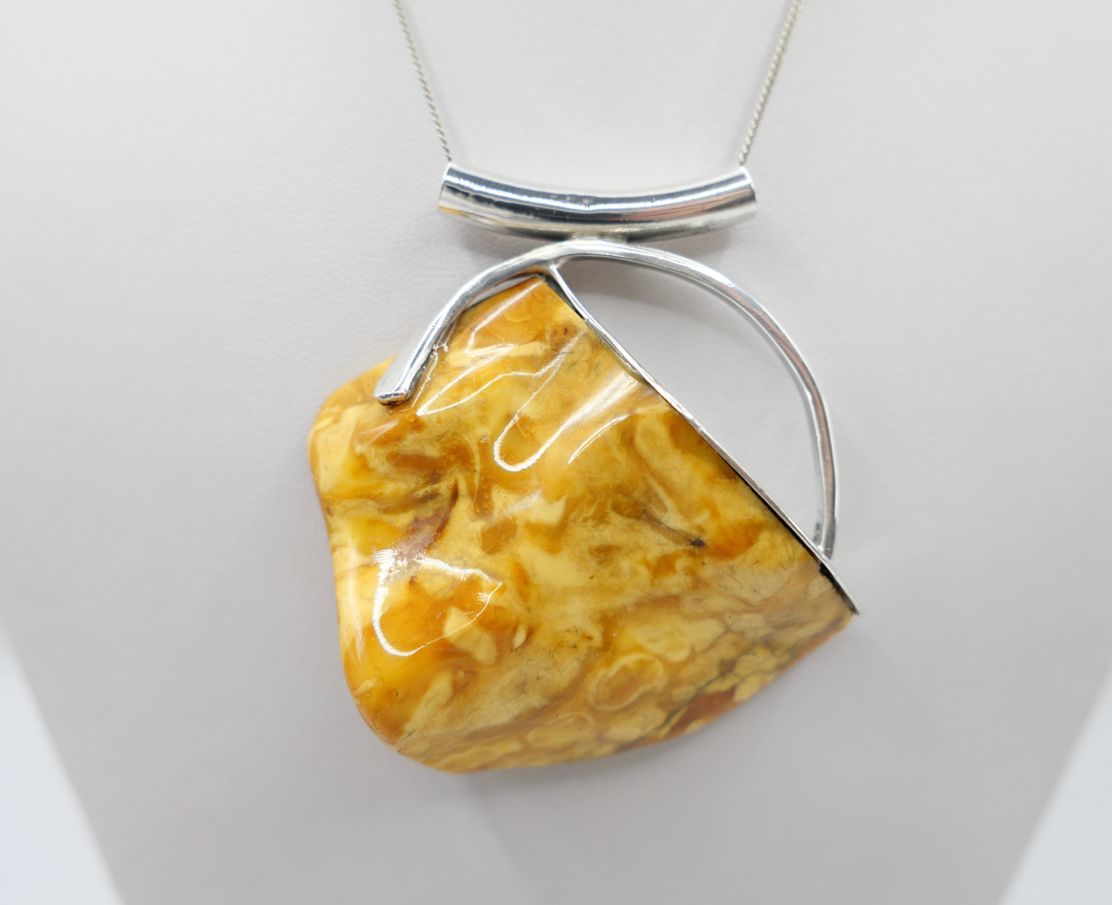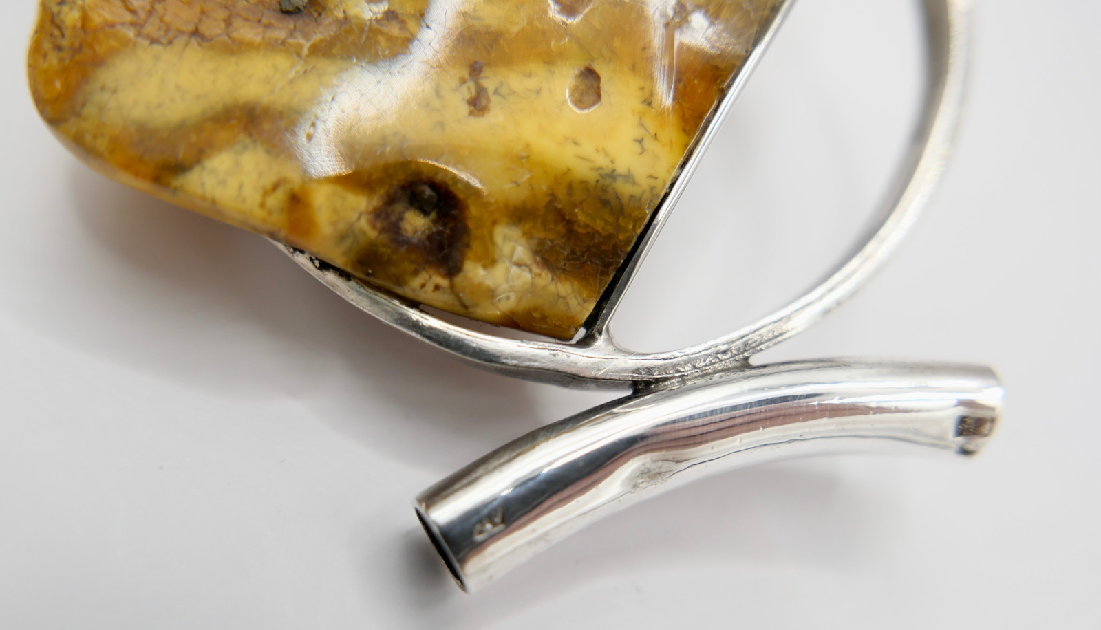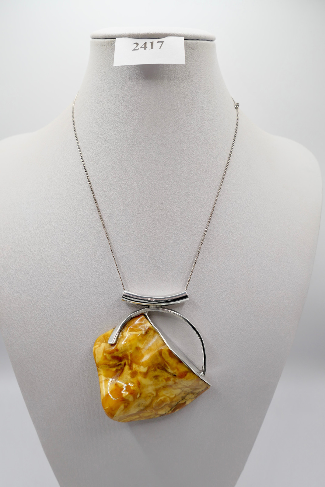 80er Jahre große Bernstein Butterscotch Anhänger 925 Silber Danzig Gdansk Polen